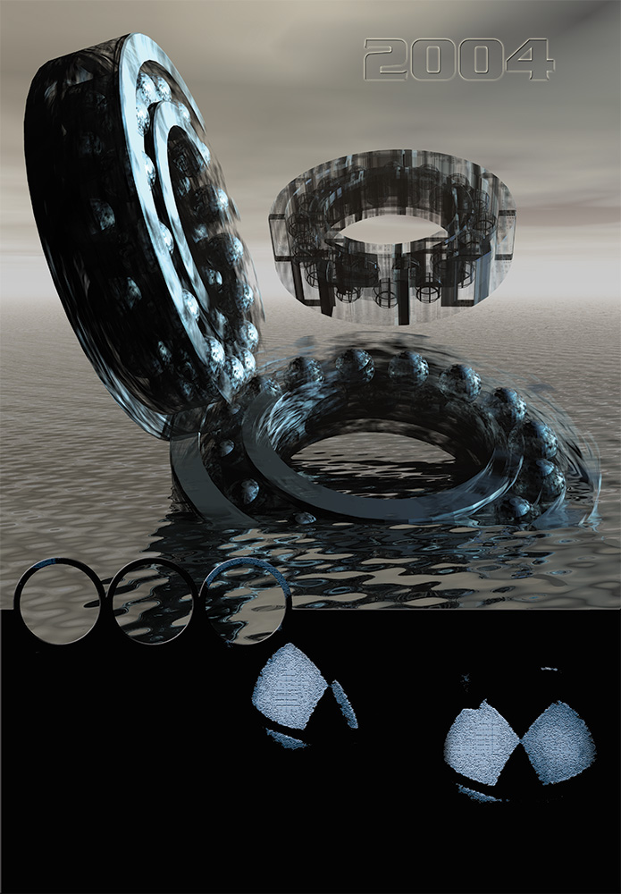 Samo łożysko to 3dMax, tekstura, tło i render w Bryce 3d. Miałem wtedy komputer z procesorem Pentium 166 mmx i kartę graficzną 2Mb. Efekt ruchu to jakaś standardowa tekstura z bryce 3d.